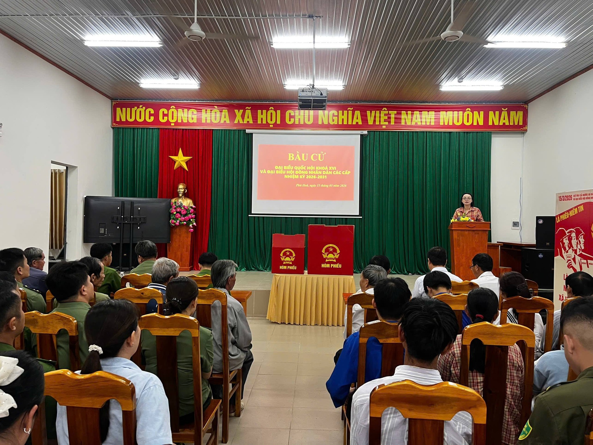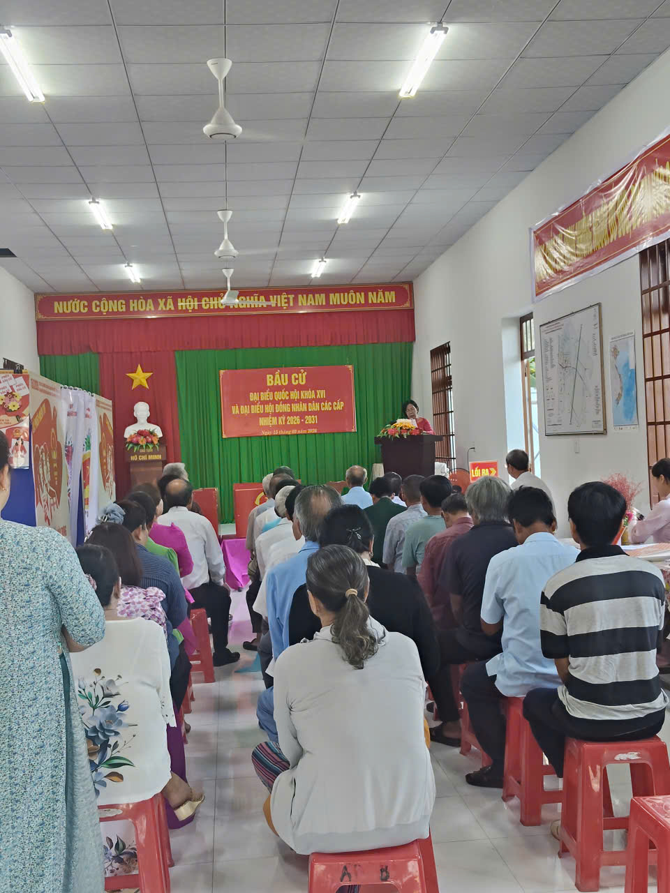 Ngay từ sáng sớm, đông đảo cử tri trên địa bàn các ấp đã có mặt tại các điểm bỏ phiếu trong không khí trang nghiêm, dân chủ và đúng quy định. Các khu vực bỏ phiếu được trang trí cờ, hoa, băng rôn, khẩu hiệu tạo nên không khí rộn ràng của Ngày hội toàn dân đi bầu cử. Công tác tổ chức được chuẩn bị chu đáo, đảm bảo an ninh trật tự, hướng dẫn cử tri thực hiện đầy đủ các bước theo quy định của pháp luật.