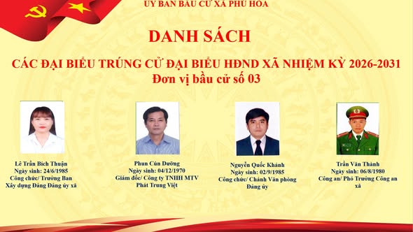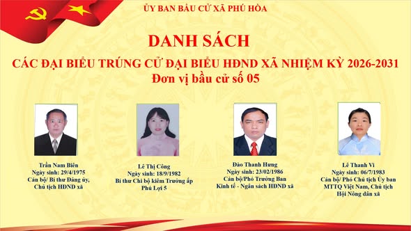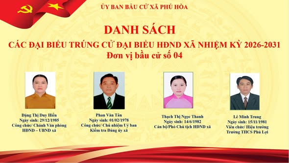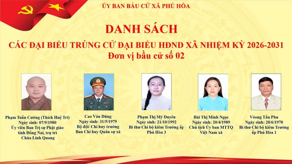 Danh sách các đại biểu trúng cử HĐND xã Phú Hòa khóa XIII, nhiệm kỳ 2026-2031