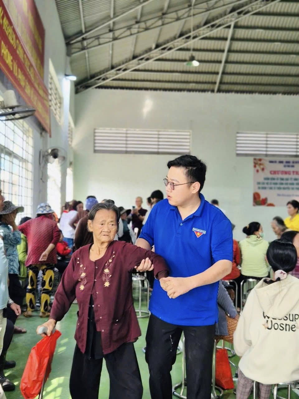 Chương trình chương trình khám bệnh và tặng quà Tết Bính Ngọ năm 2026 của Đoàn y, bác sỹ thiện nguyện thư pháp Thiện Tâm các hộ đến khám được các y, bác sỹ khám một số bệnh lý của người già như:  đau nhức, huyết áp, xương khớp, các bệnh về mắt của người cao tuổi…