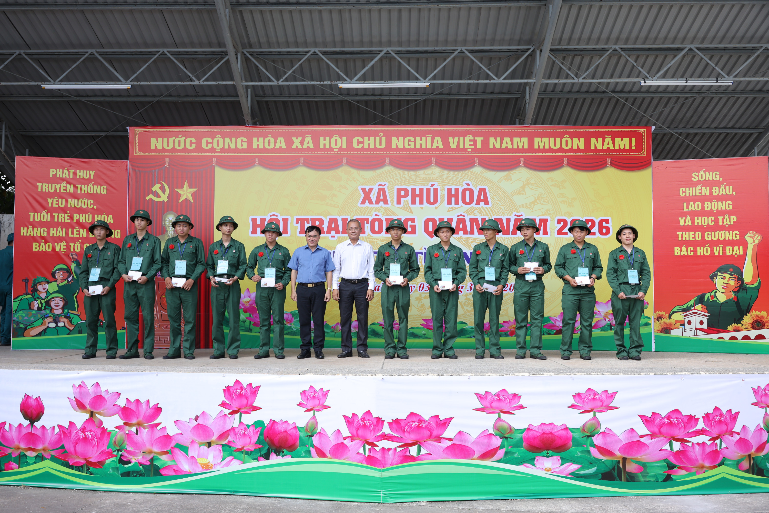 Nhân dịp này, Đảng ủy, HĐND, UBND, Ủy ban MTTQ Việt Nam xã Phú Hòa cùng các ban, ngành, đoàn thể đã trao những phần quà ý nghĩa cho các tân binh, gửi gắm lời chúc sức khỏe, bình an và lập nhiều thành tích trong môi trường quân đội, công an.