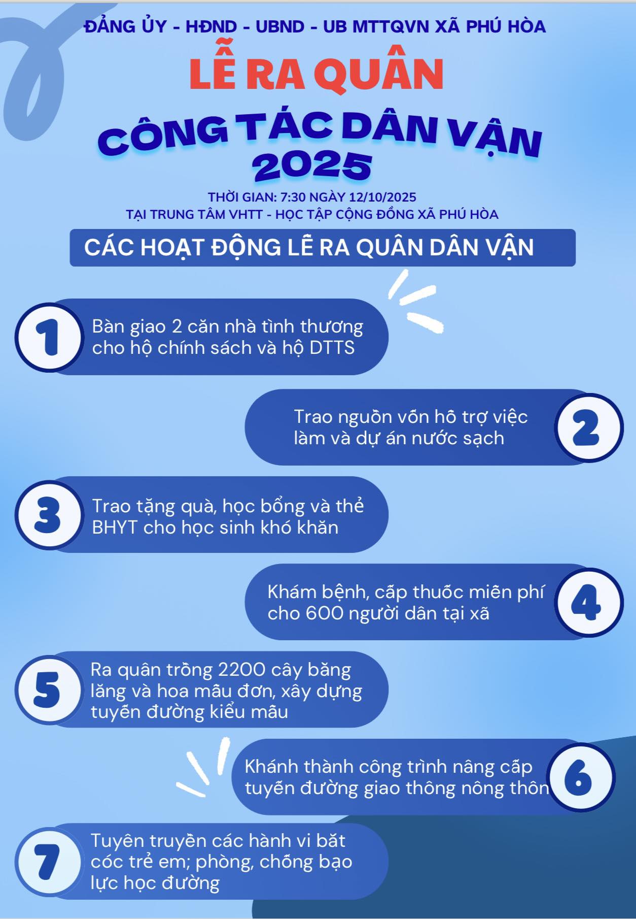Các hoạt động được diễn ra vào lúc 7h30 ngày 12/10/2025 tại Trung tâm VHTT - Học tập cộng đồng xã Phú Hòa