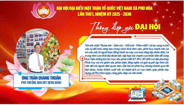 Hướng về Đại hội đại biểu MTTQ Việt Nam xã Phú Hòa lần thứ I, mỗi trái tim người dân và cán bộ, đảng viên đang chung một nhịp đập hy vọng và tin tưởng. Đây không chỉ là một sự kiện chính trị, mà là nơi hội tụ ý chí, gửi gắm khát vọng về một nhiệm kỳ mới đột phá và hiệu quả, nhất là trong bối cảnh toàn tỉnh đang vận hành theo mô hình chính quyền 2 cấp tinh gọn.